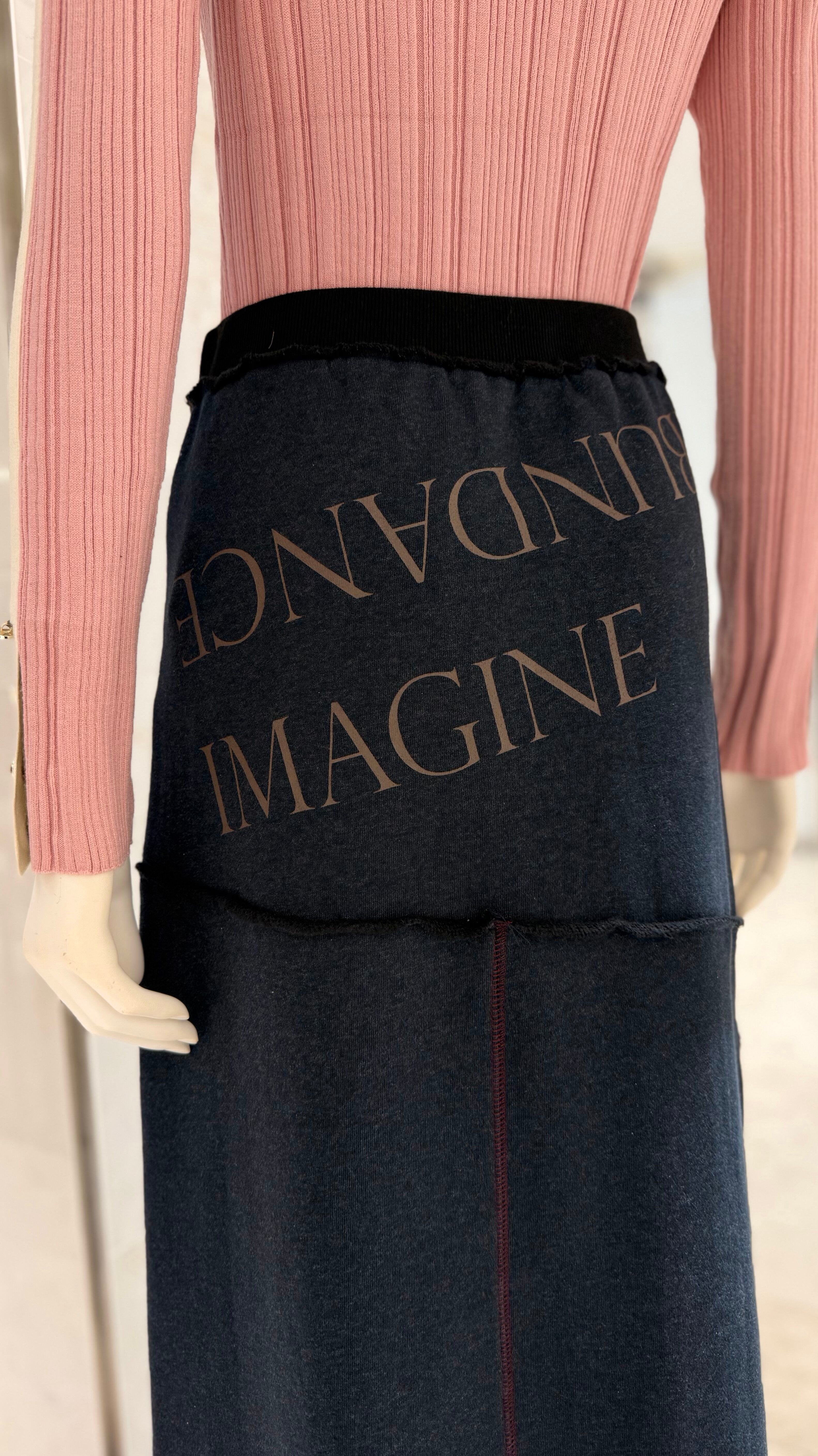 ヒップに入れたテキストが存在感ある感度良く仕上げた大人なデザインスカートです。