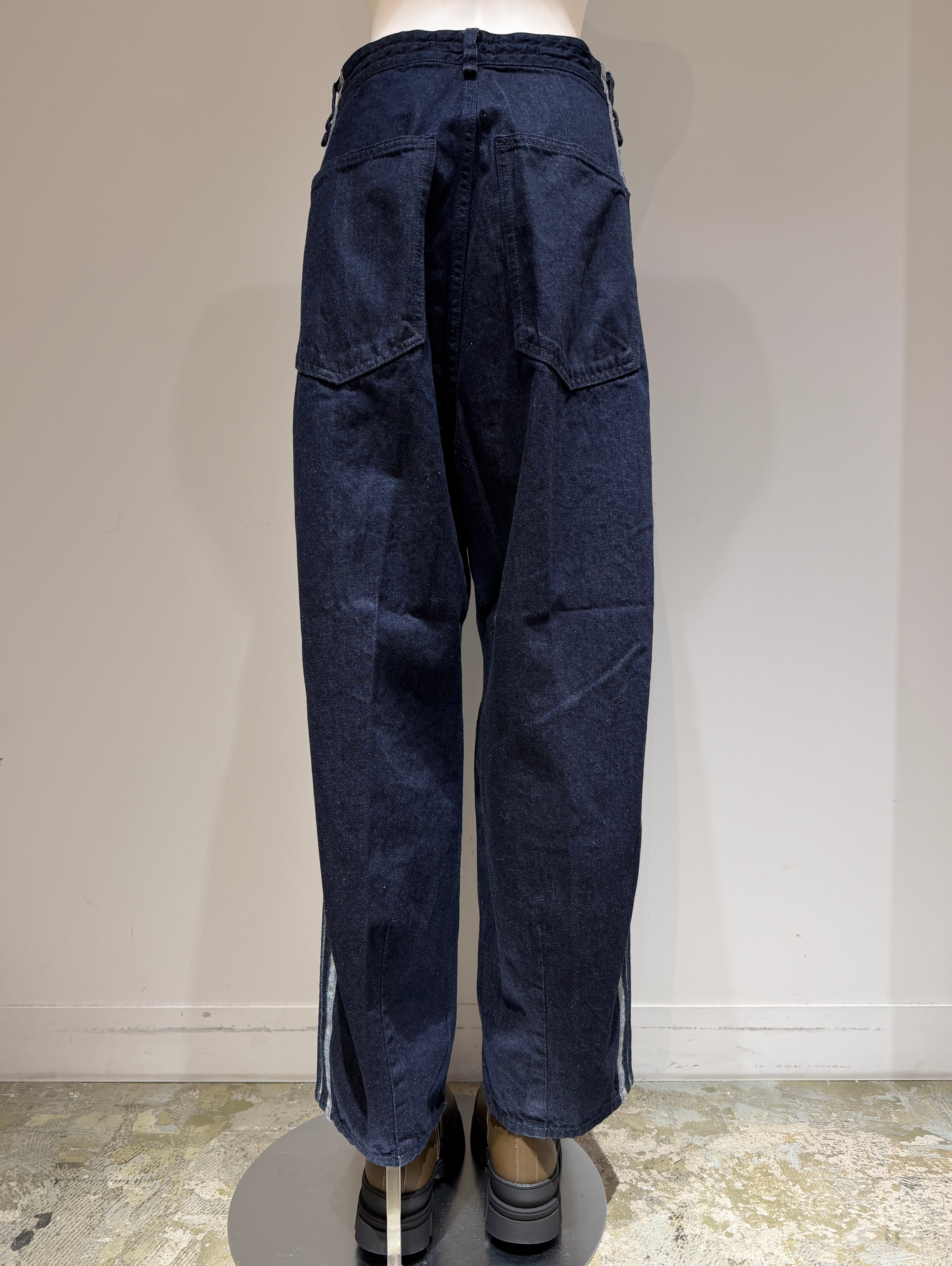 立体的なカーブシルエットがポイントのデニムトラックパンツ
