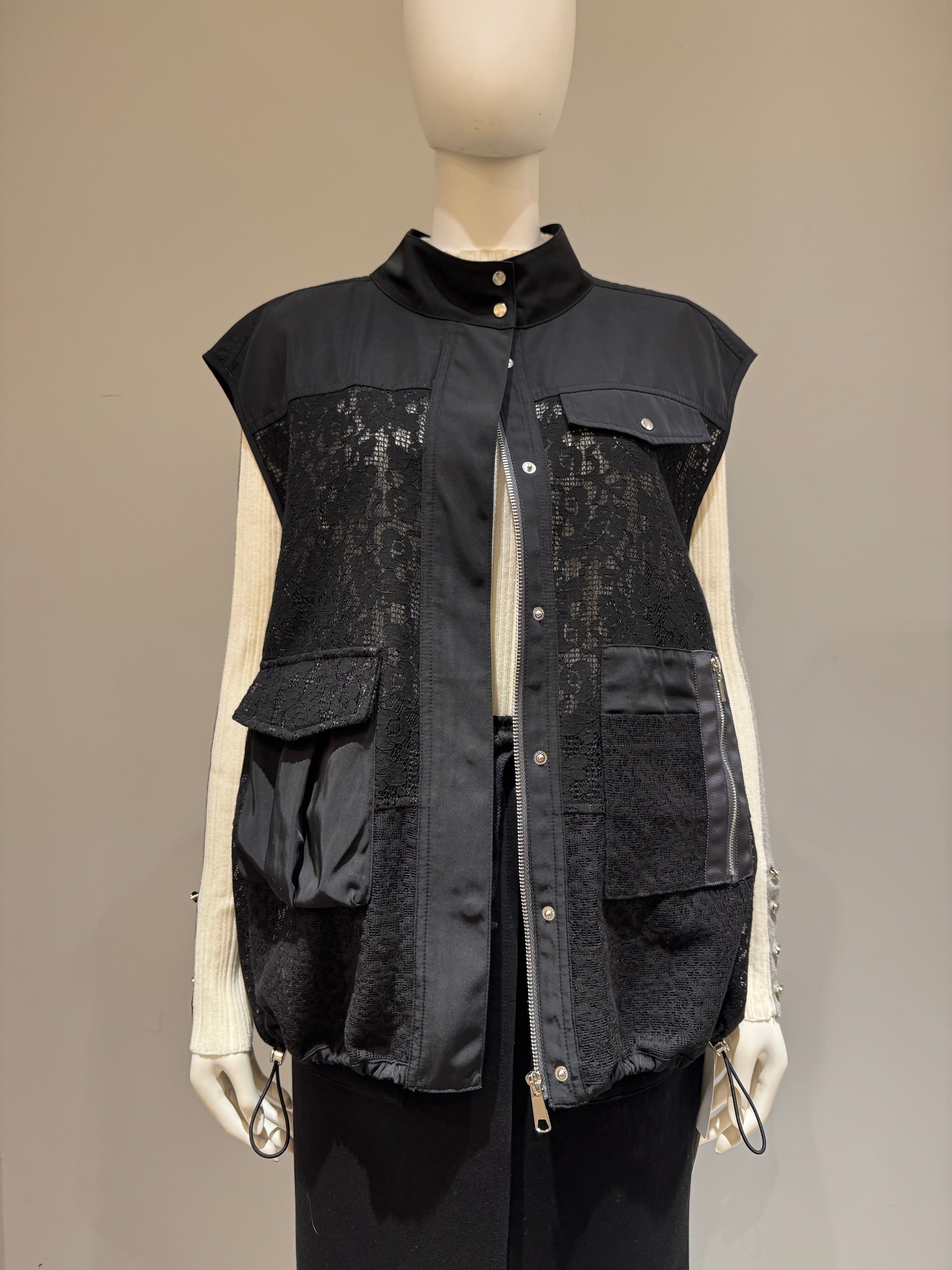 軽やかなメッシュレースを2種類使用したレースジレ。