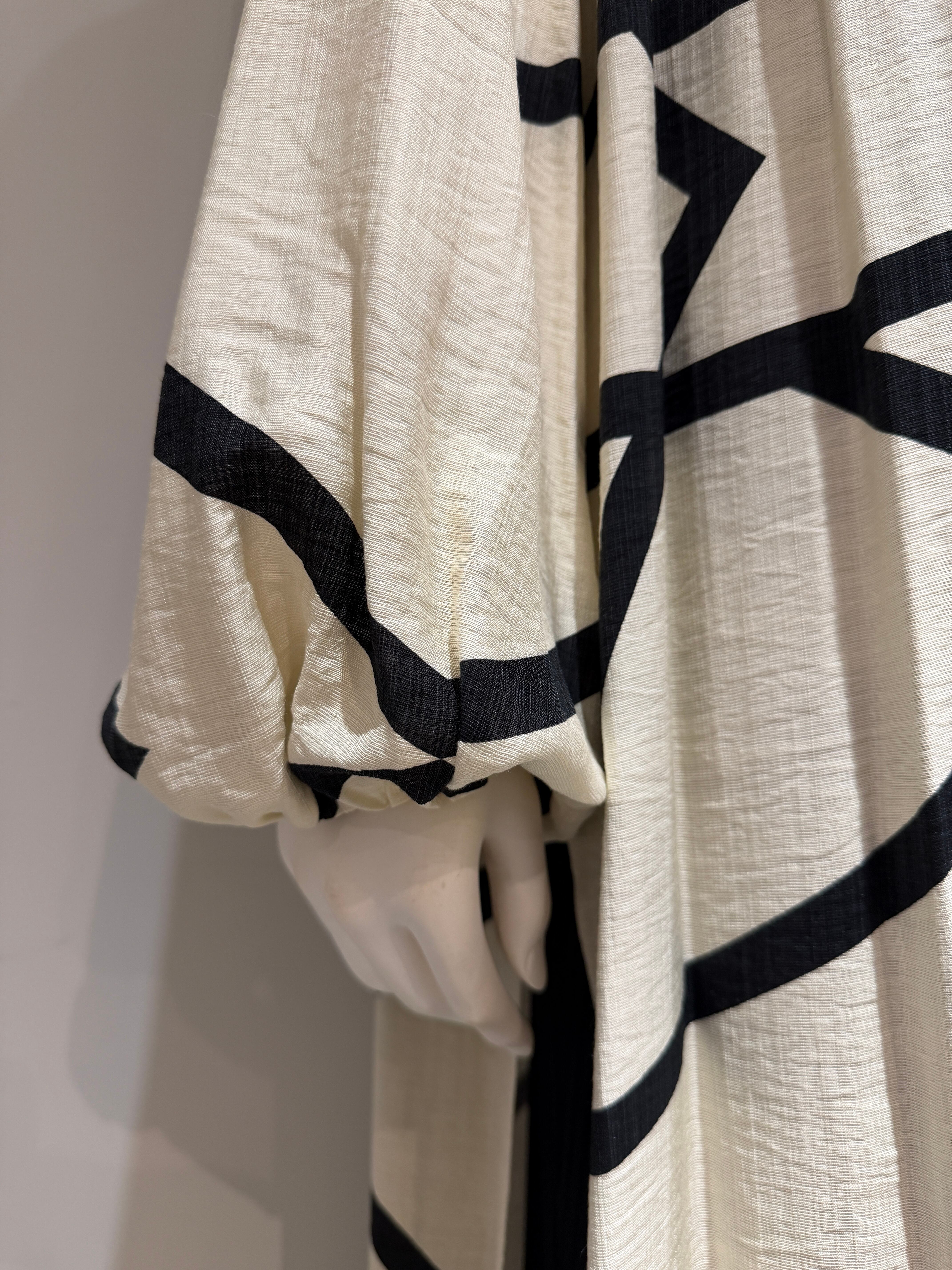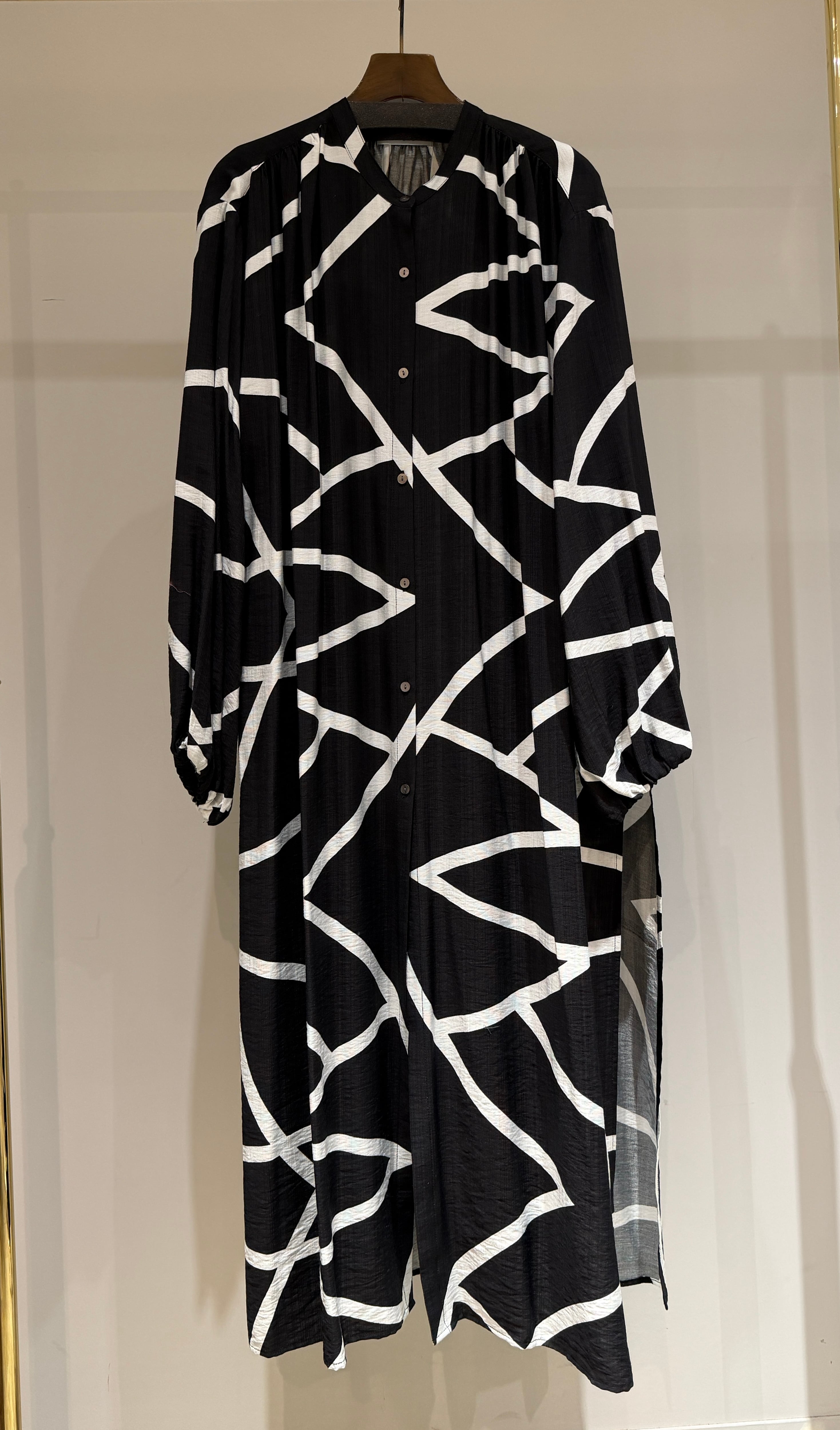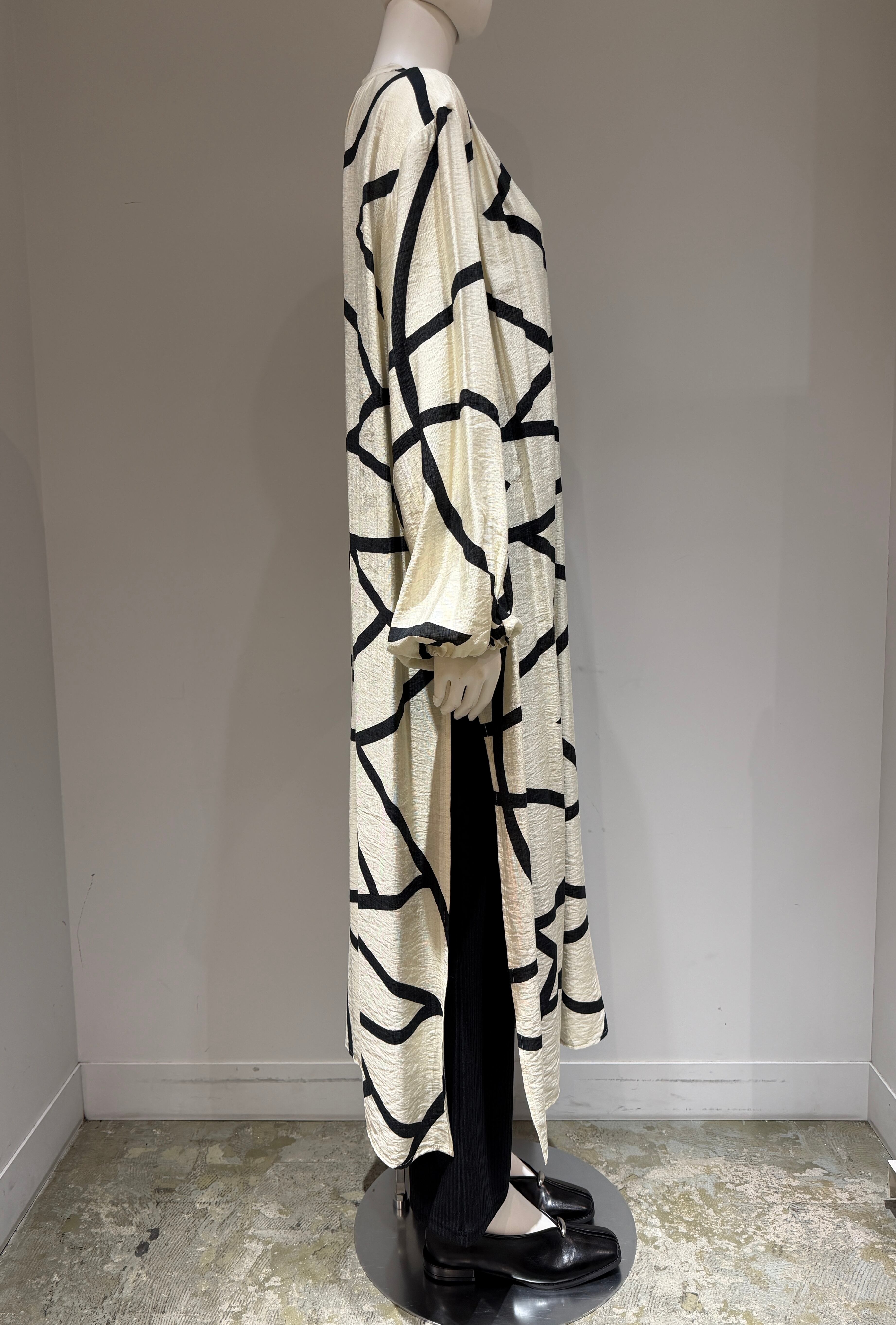 大胆なライン柄が印象的な、軽やかな着心地のロングシャツワンピース。