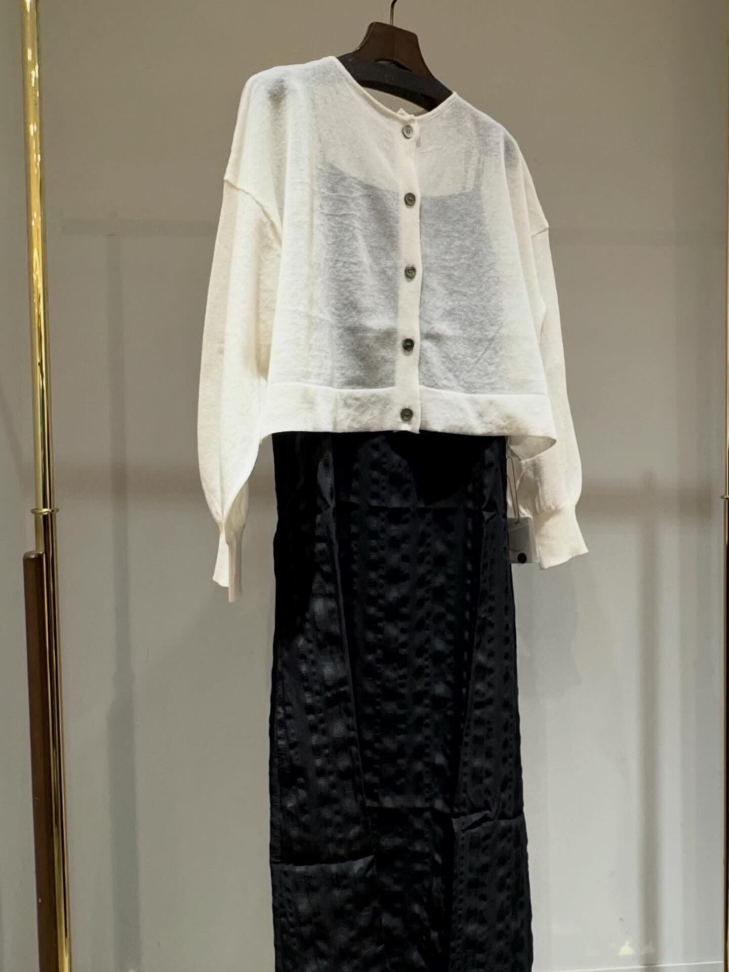 コンパクトな着丈(45cm)なので、ワイドパンツやマキシスカートとも相性抜群。