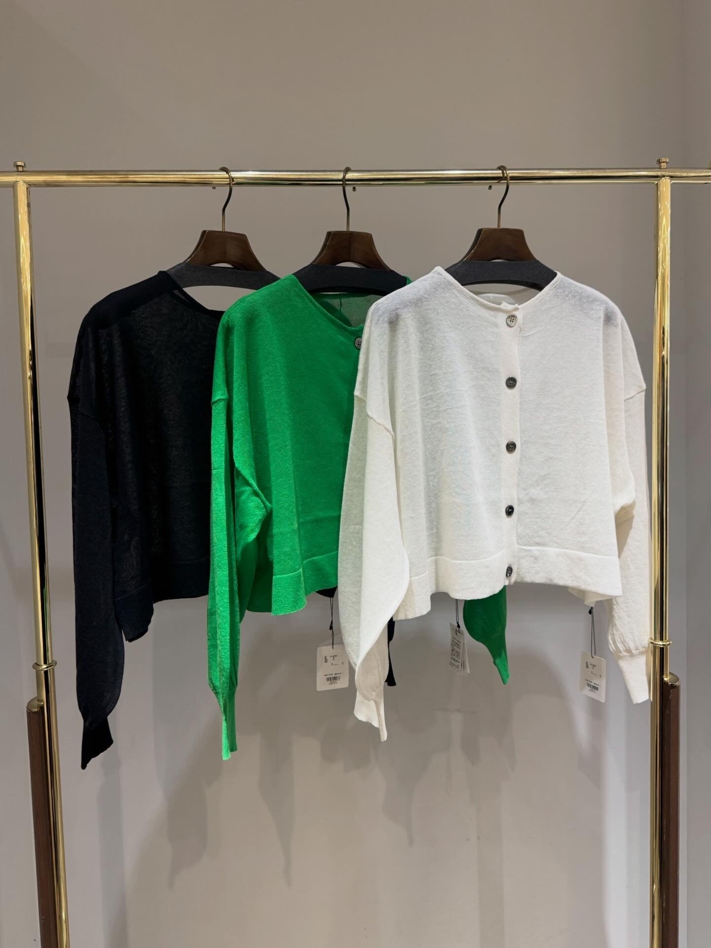 上品な輝きを放つ貝ボタンを前にして羽織りとしてはもちろん、