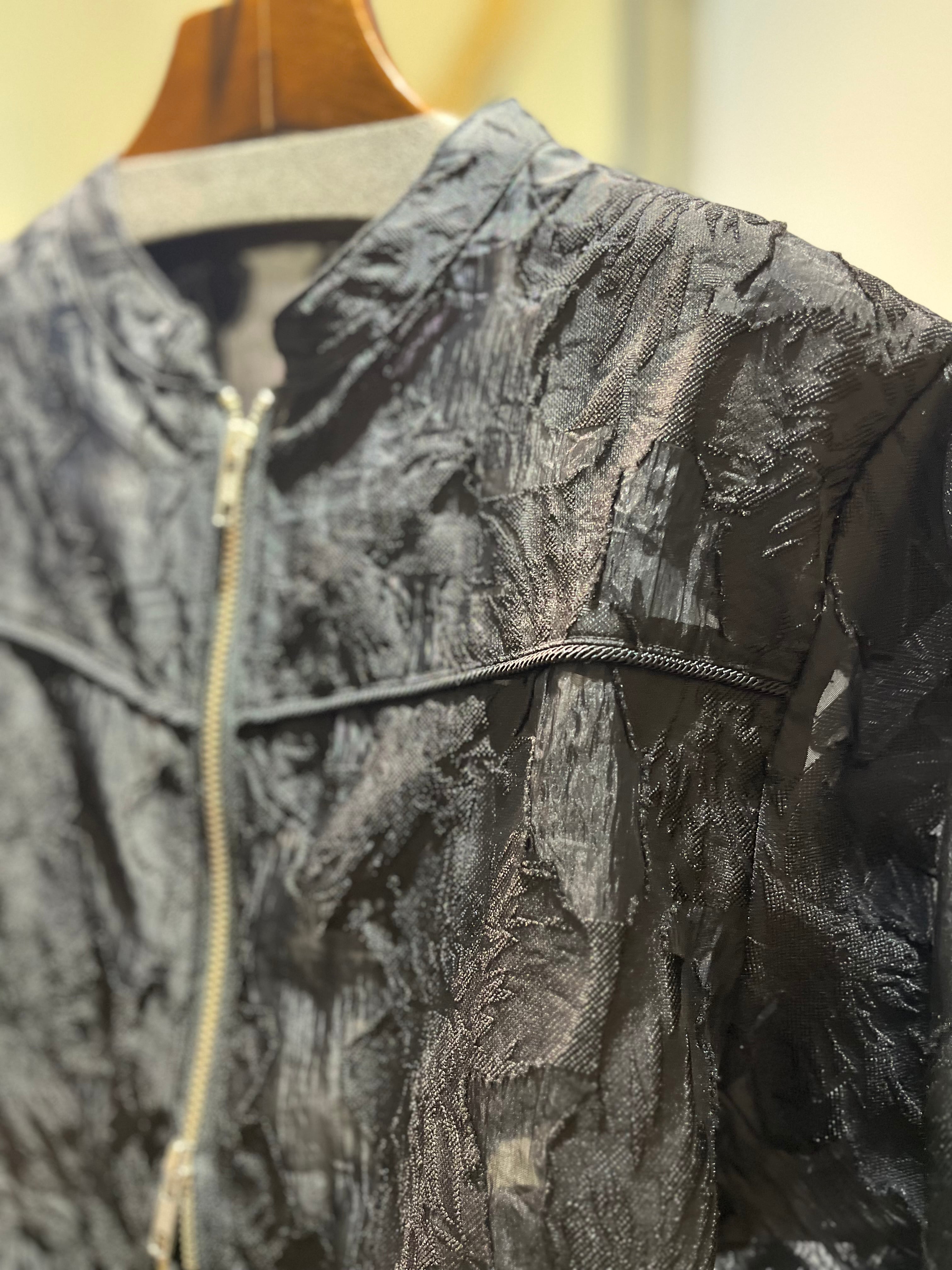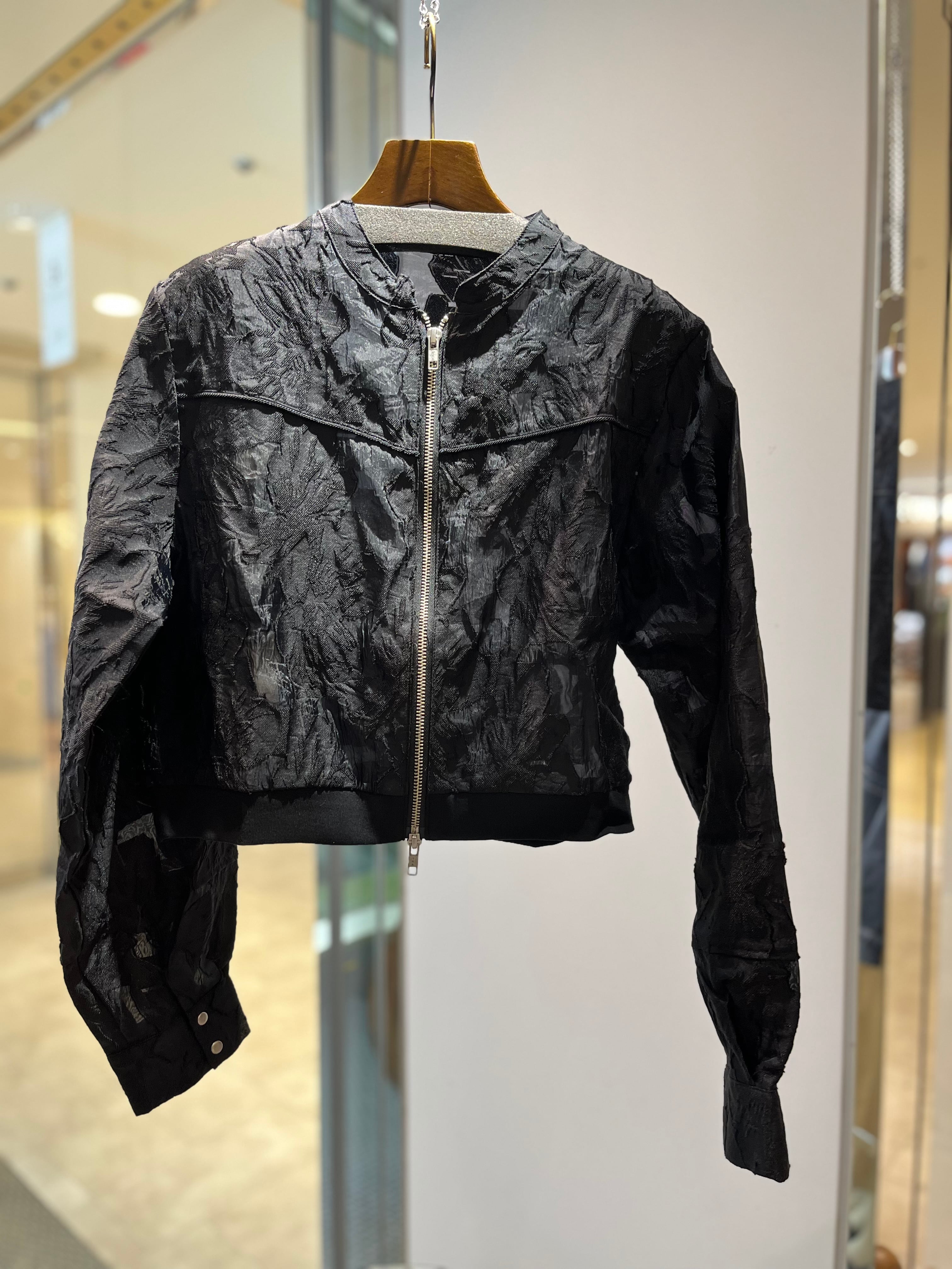 カジュアルなブルゾンデザインに、同色花柄のシアージャガードを掛け合わせることで、程よく女性らしさをプラスしました。
