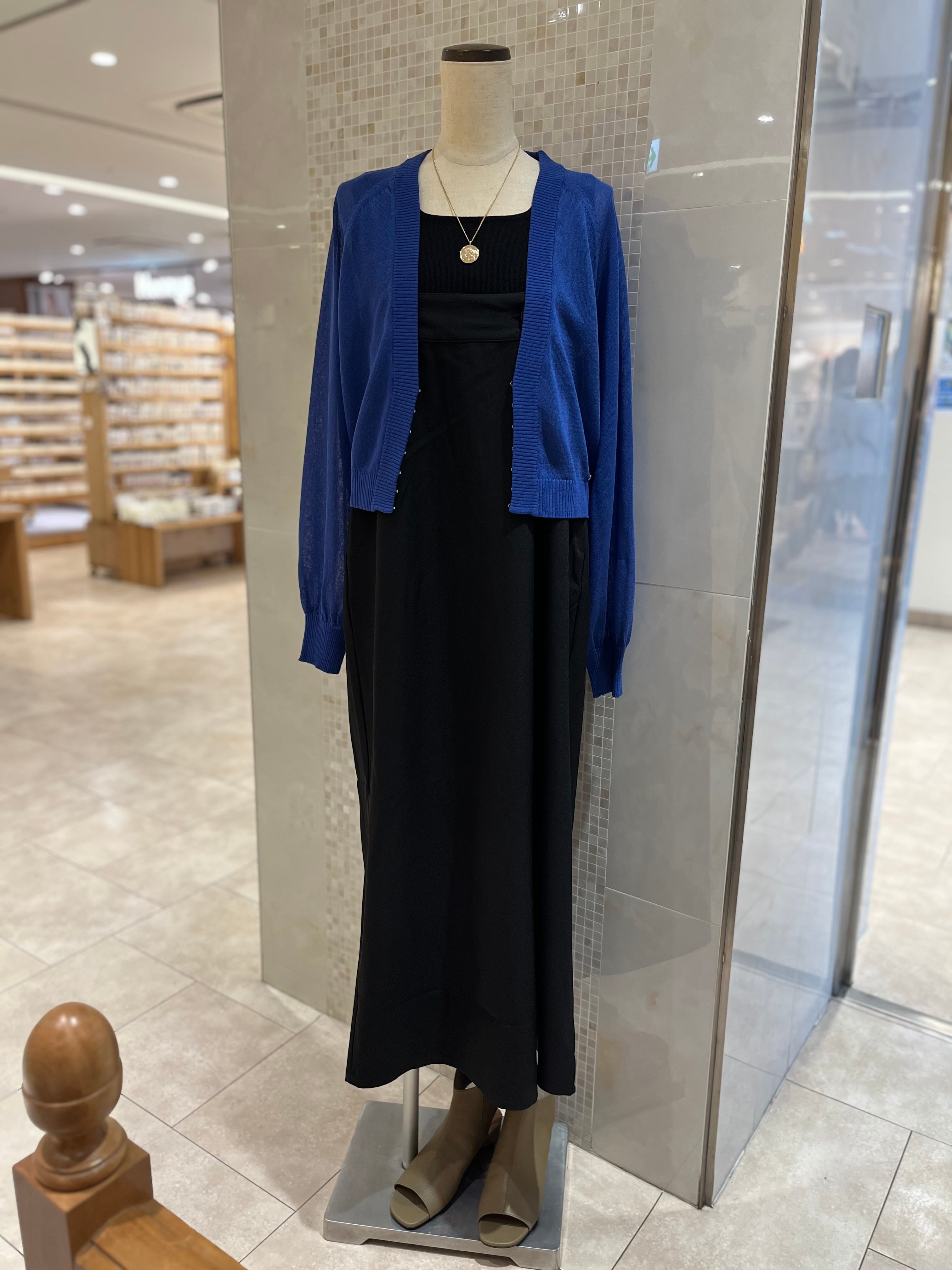 シンプルなワンピースの上にレイヤードするだけでも、着映えスタイルが完成します。