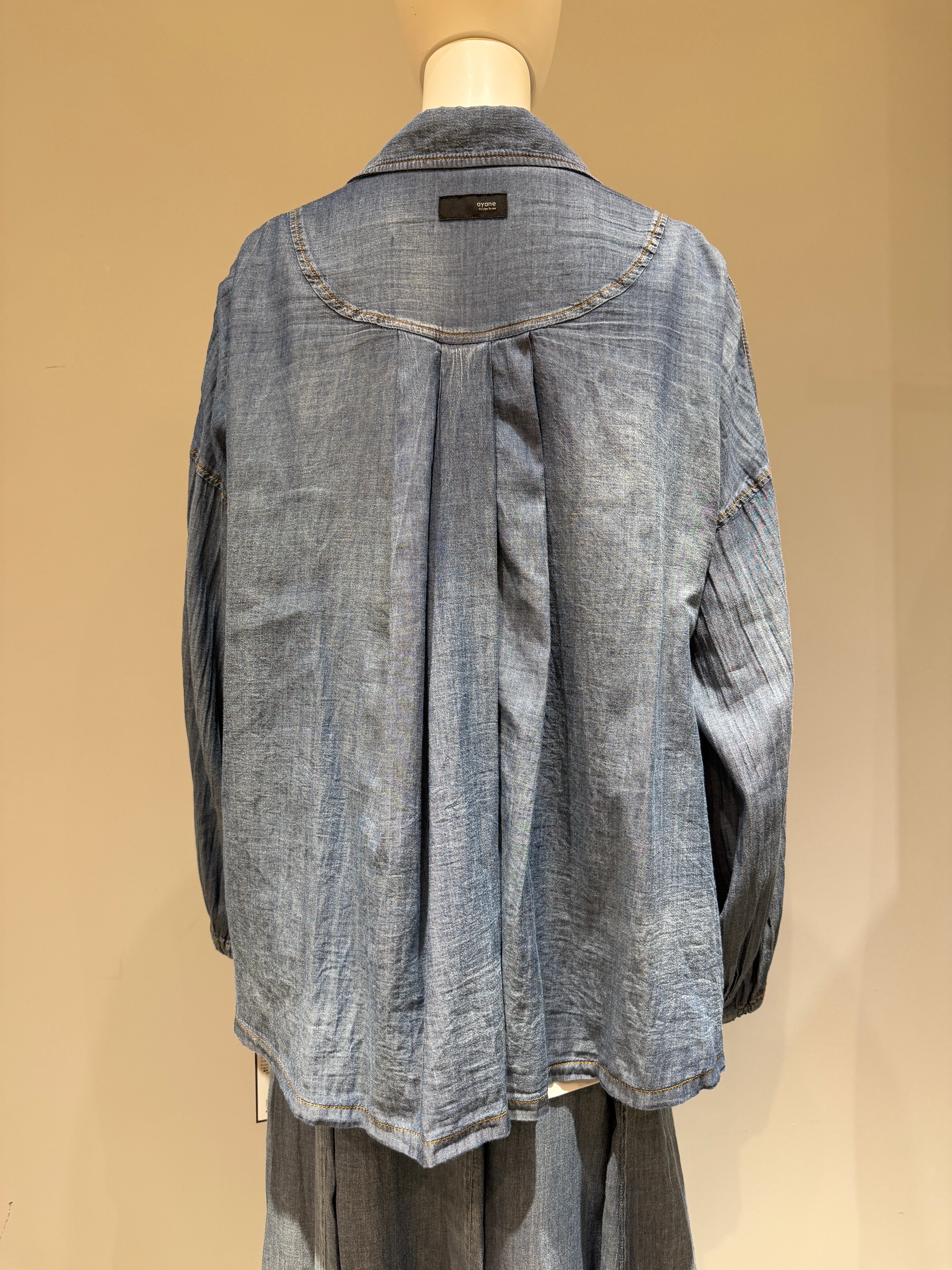 ayaneが別注で作ったシアーデニム生地を使用したショート丈のシャツが入荷しました。