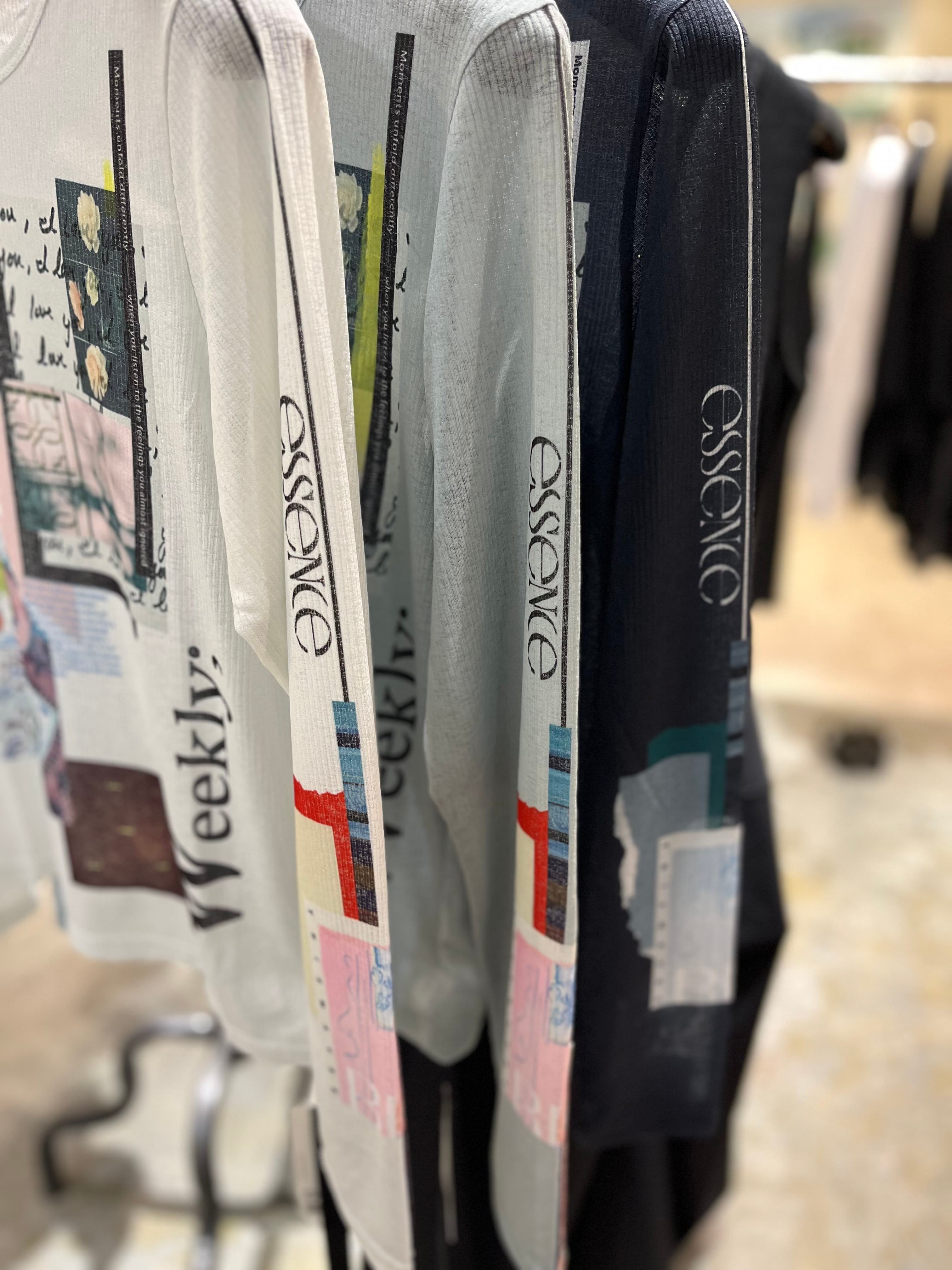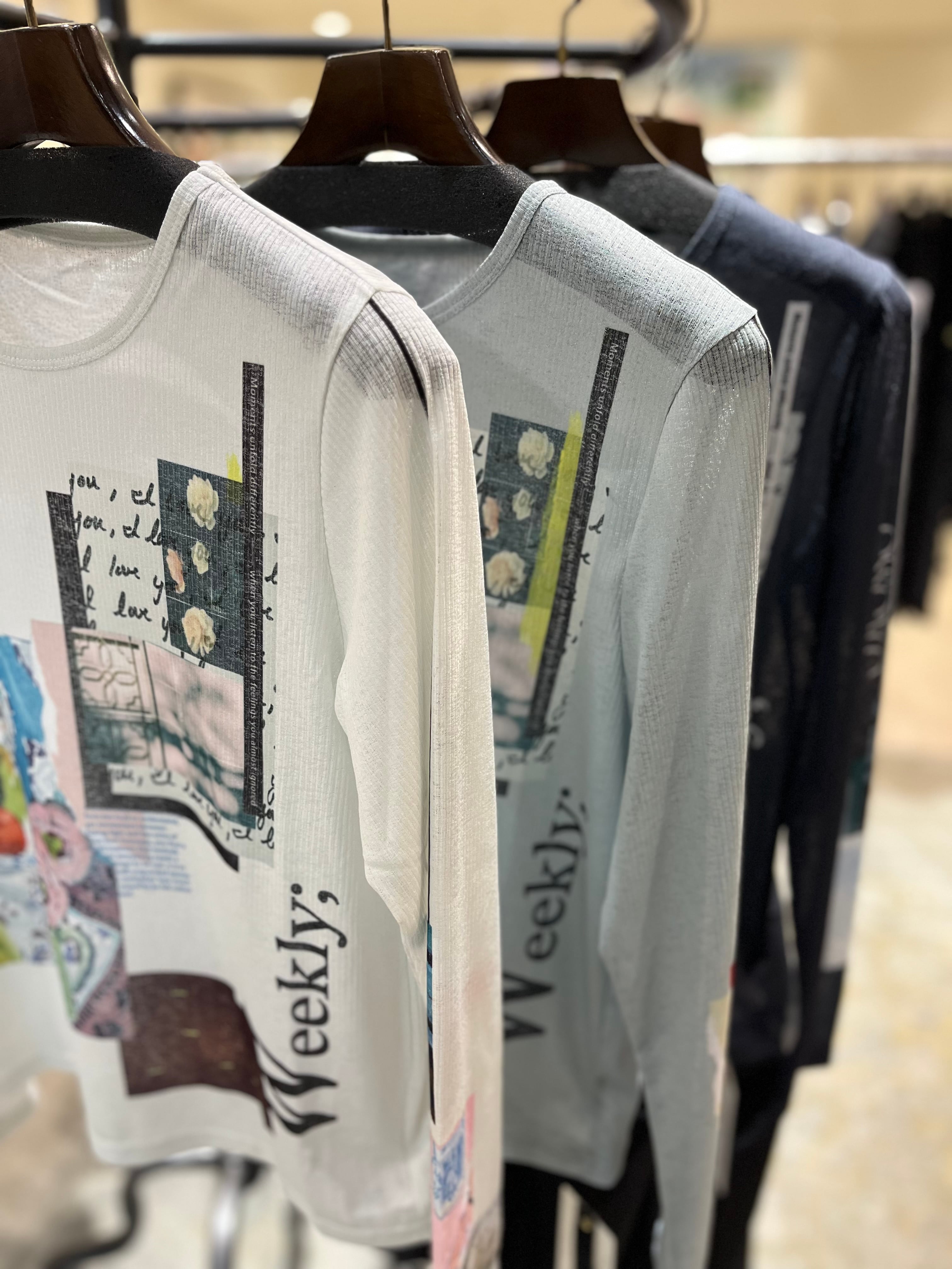3つの異なるアートなフォトプリントを身ごろの色ごとに明度を変え、
