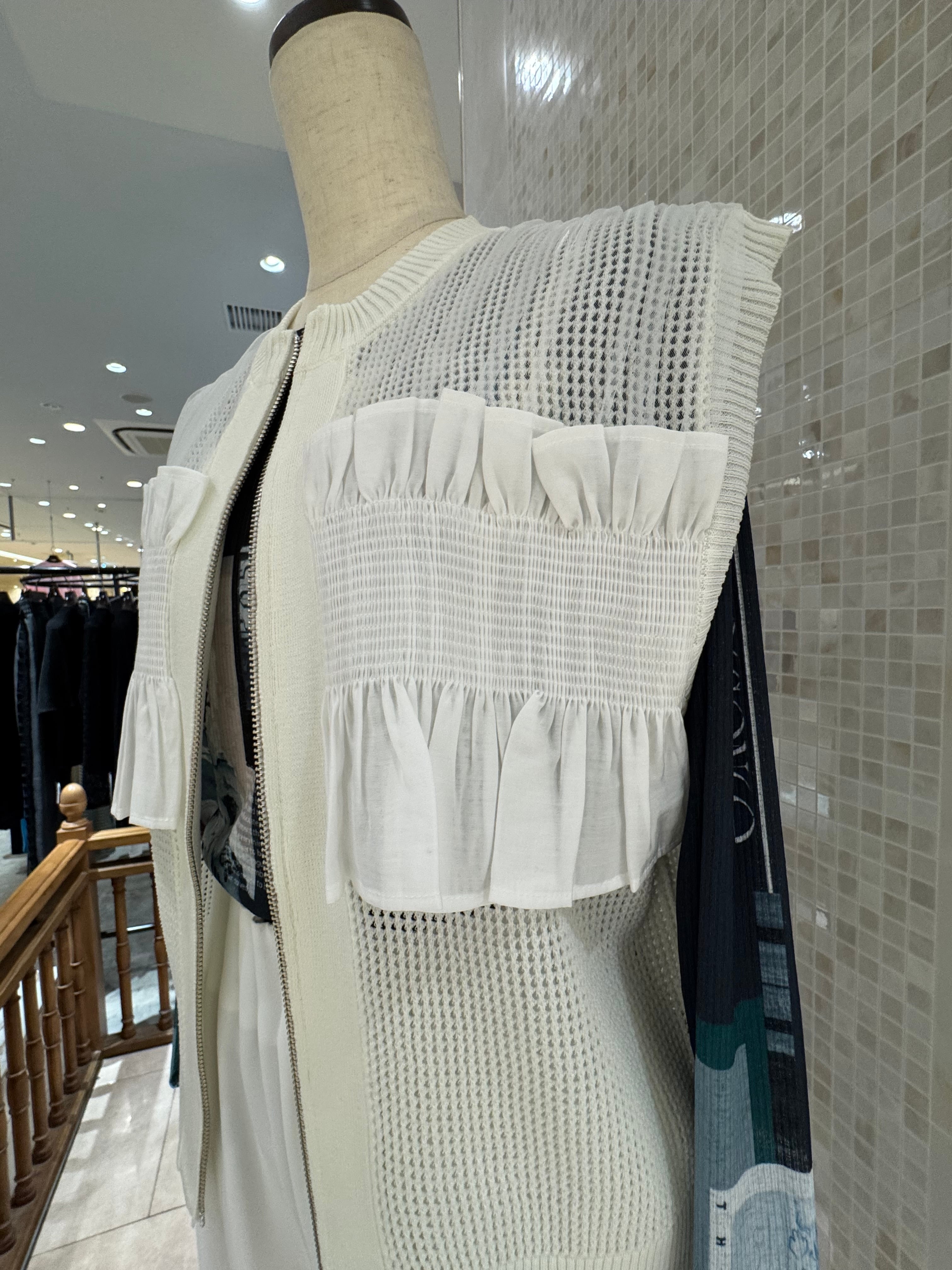 【Eimee law】シャーリングフリルメッシュニットベスト