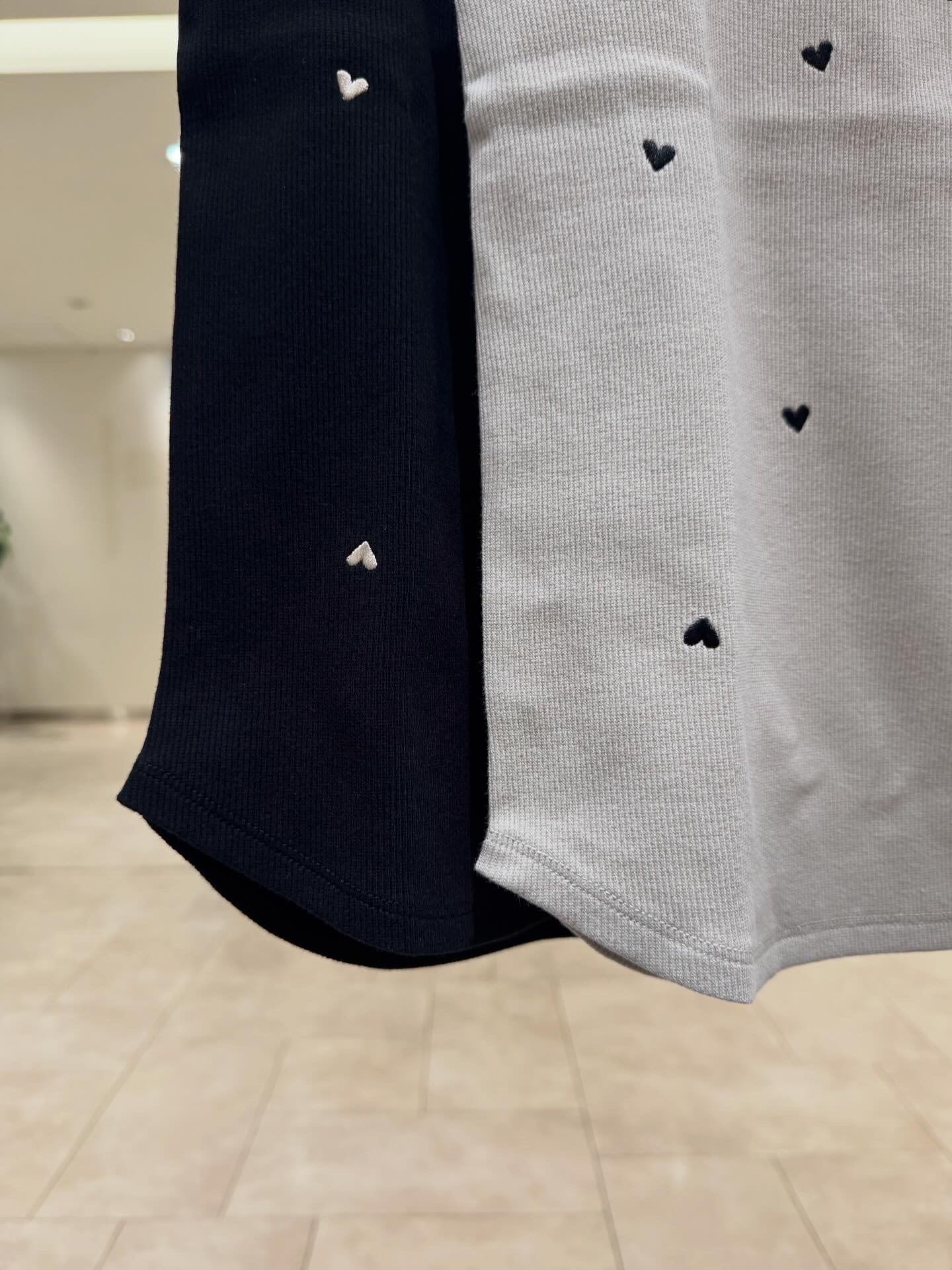 ランダムに散りばめた小さなハート刺繍が特徴。