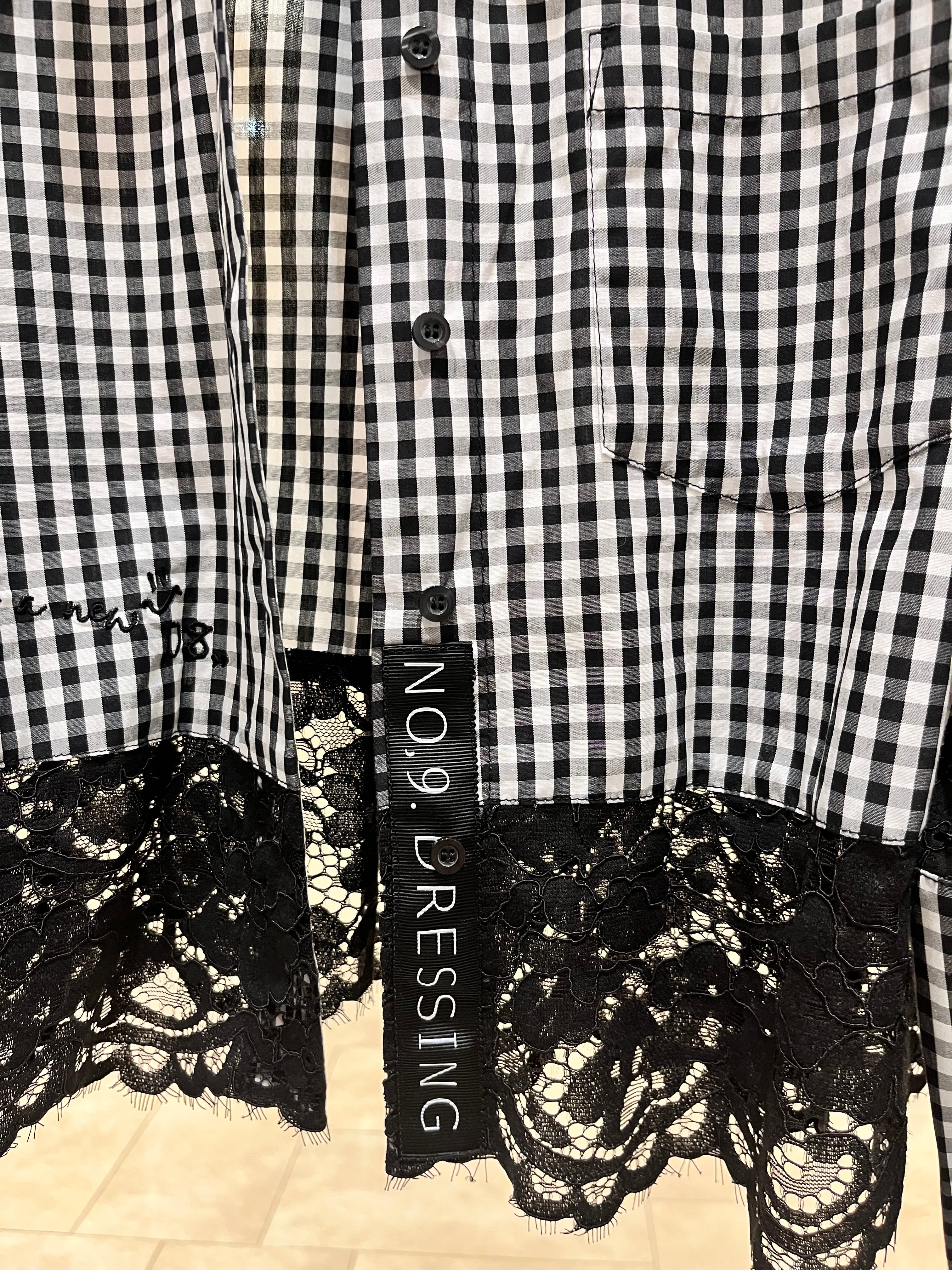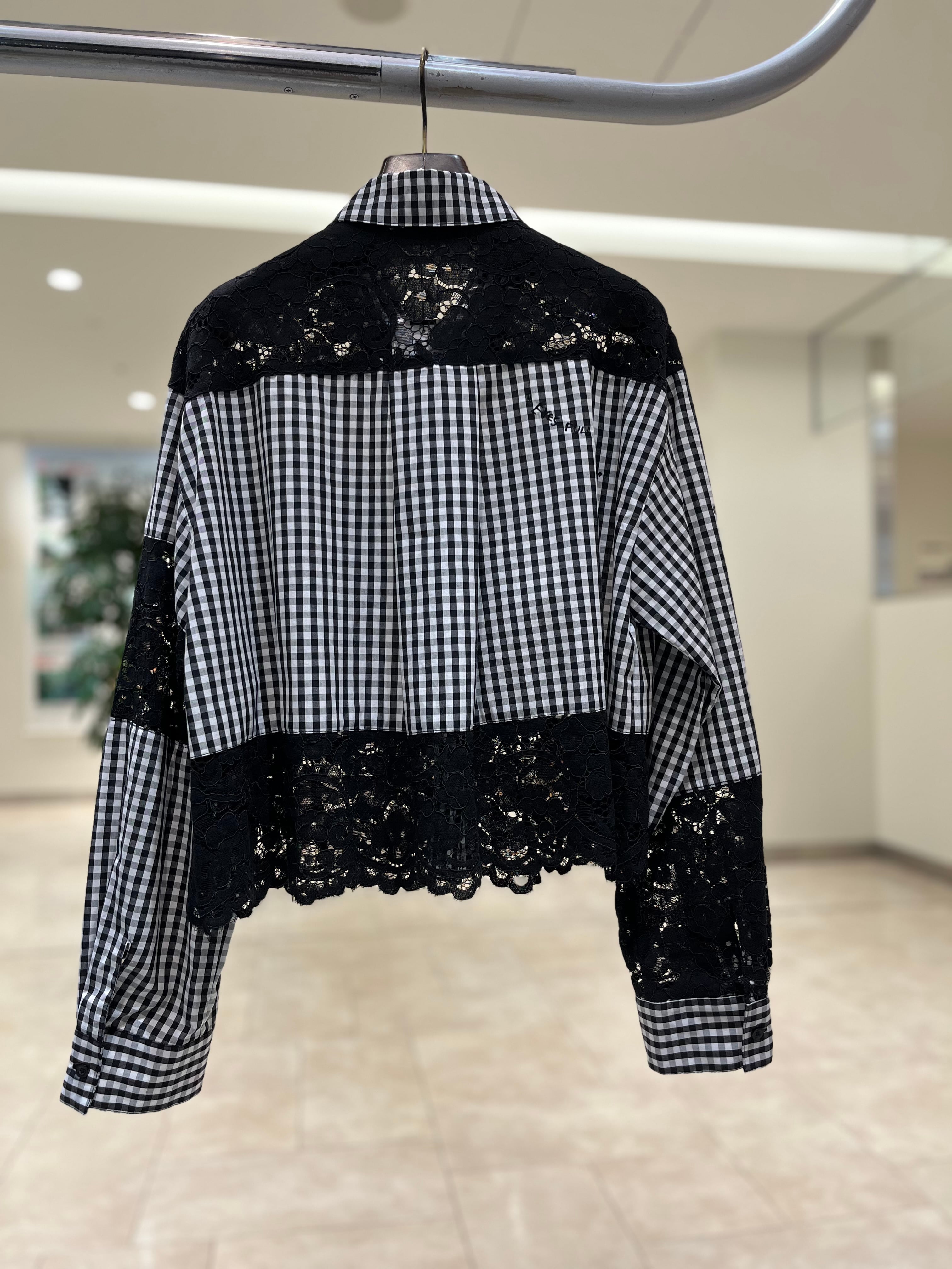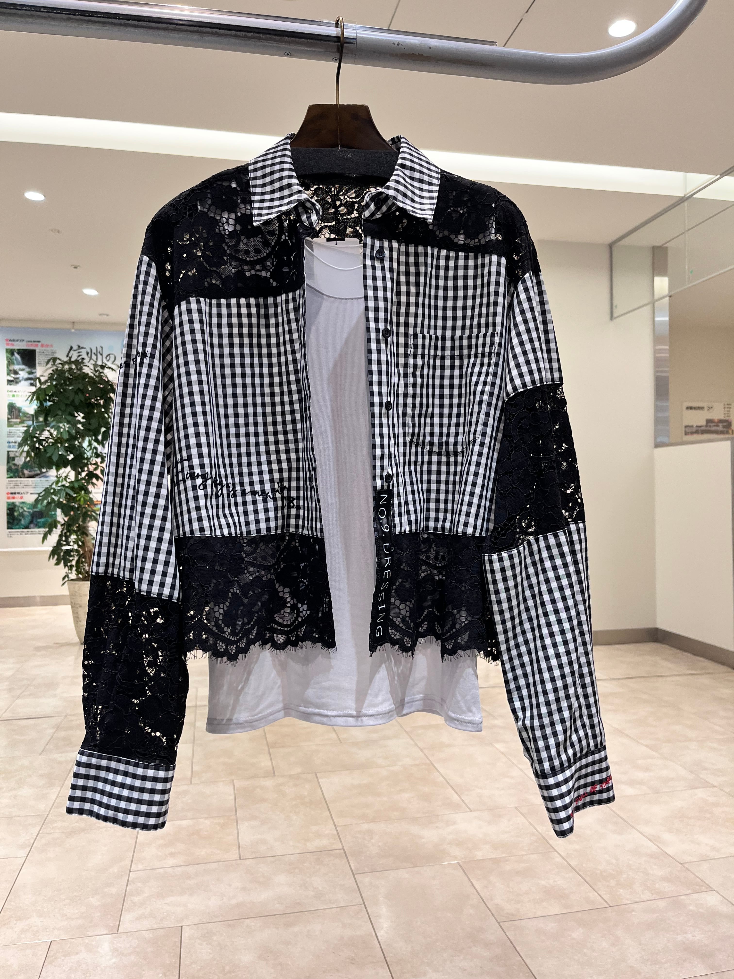 レース切り替えのシャツにランダム刺繍がほどこされた表情豊かなデザインシャツです。