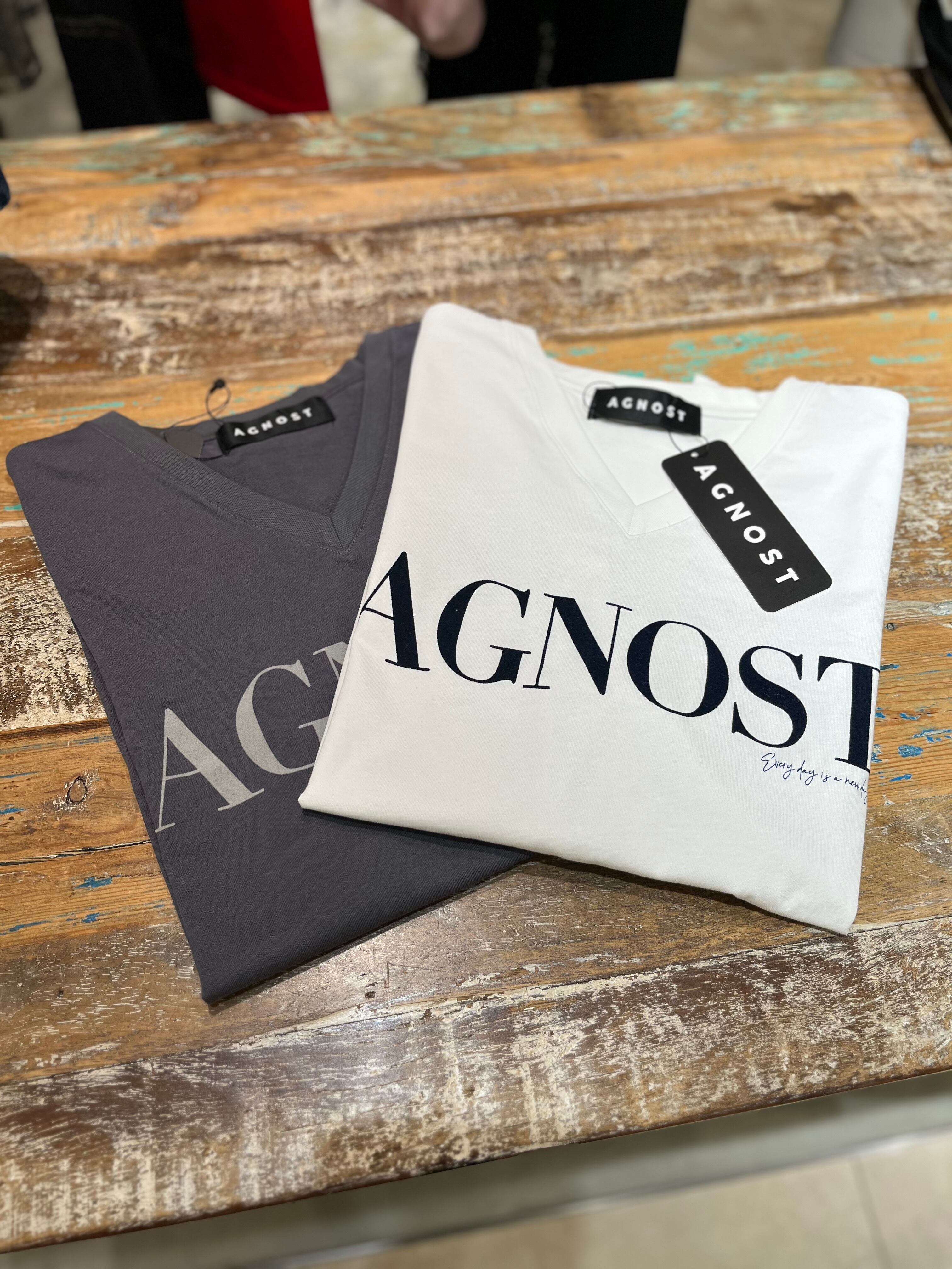 【AGNOST】オーバーサイズVネックロゴTシャツ