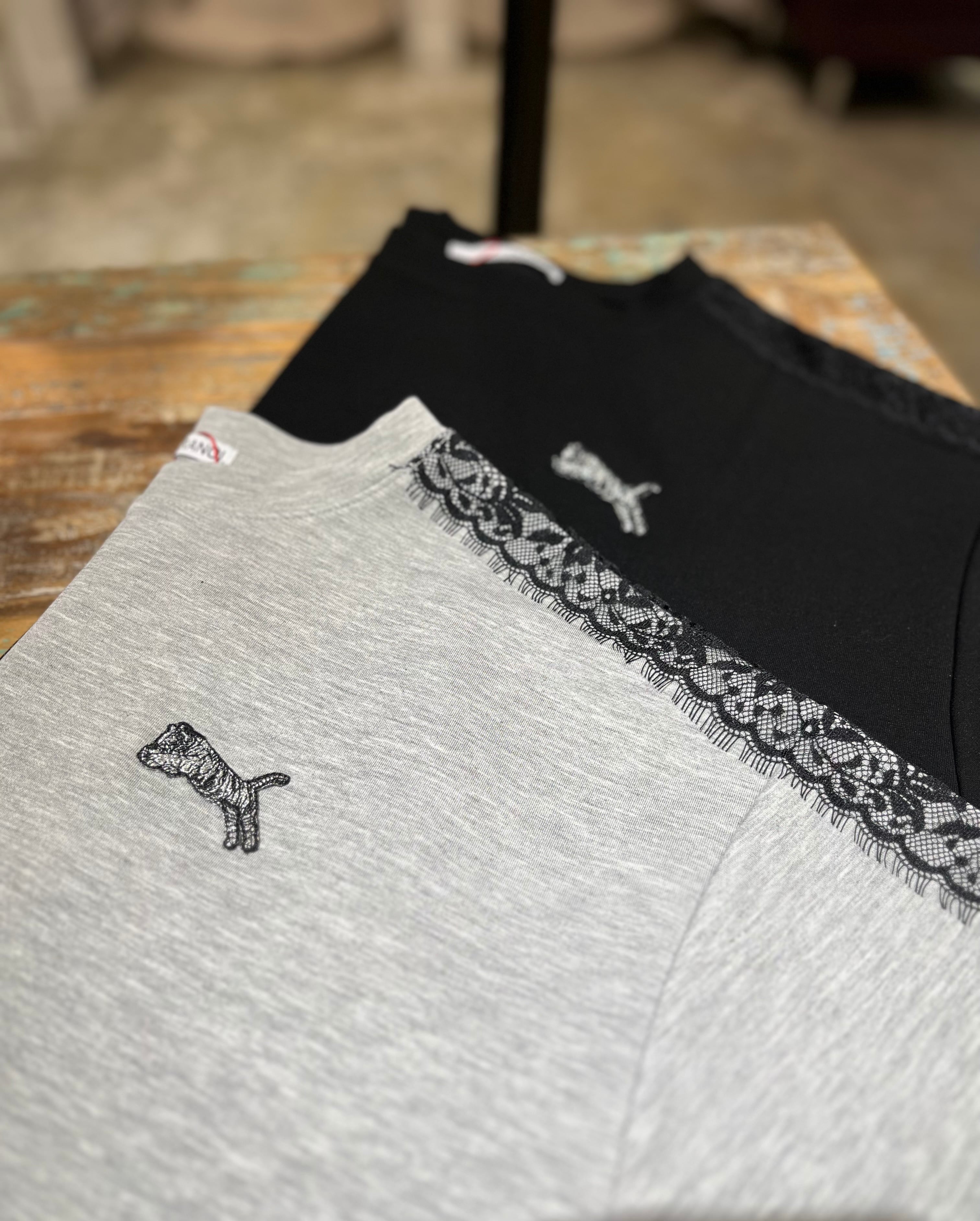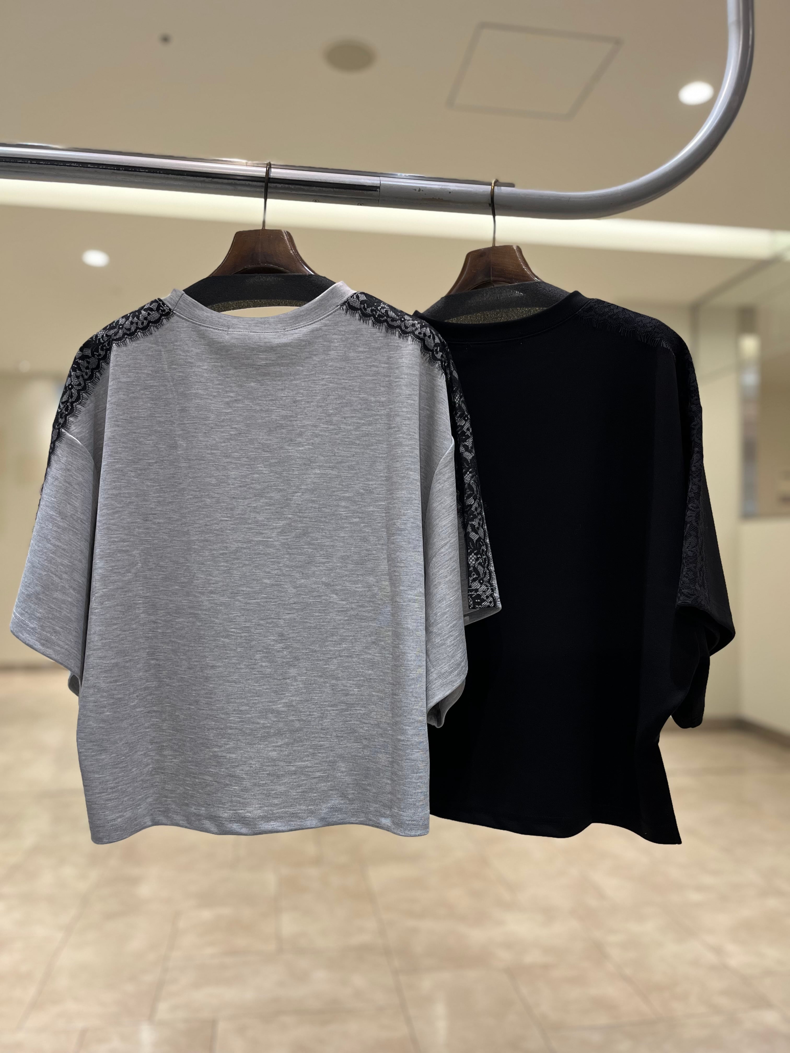 肩から袖にかけてのレースでラインが印象的なトップスです。