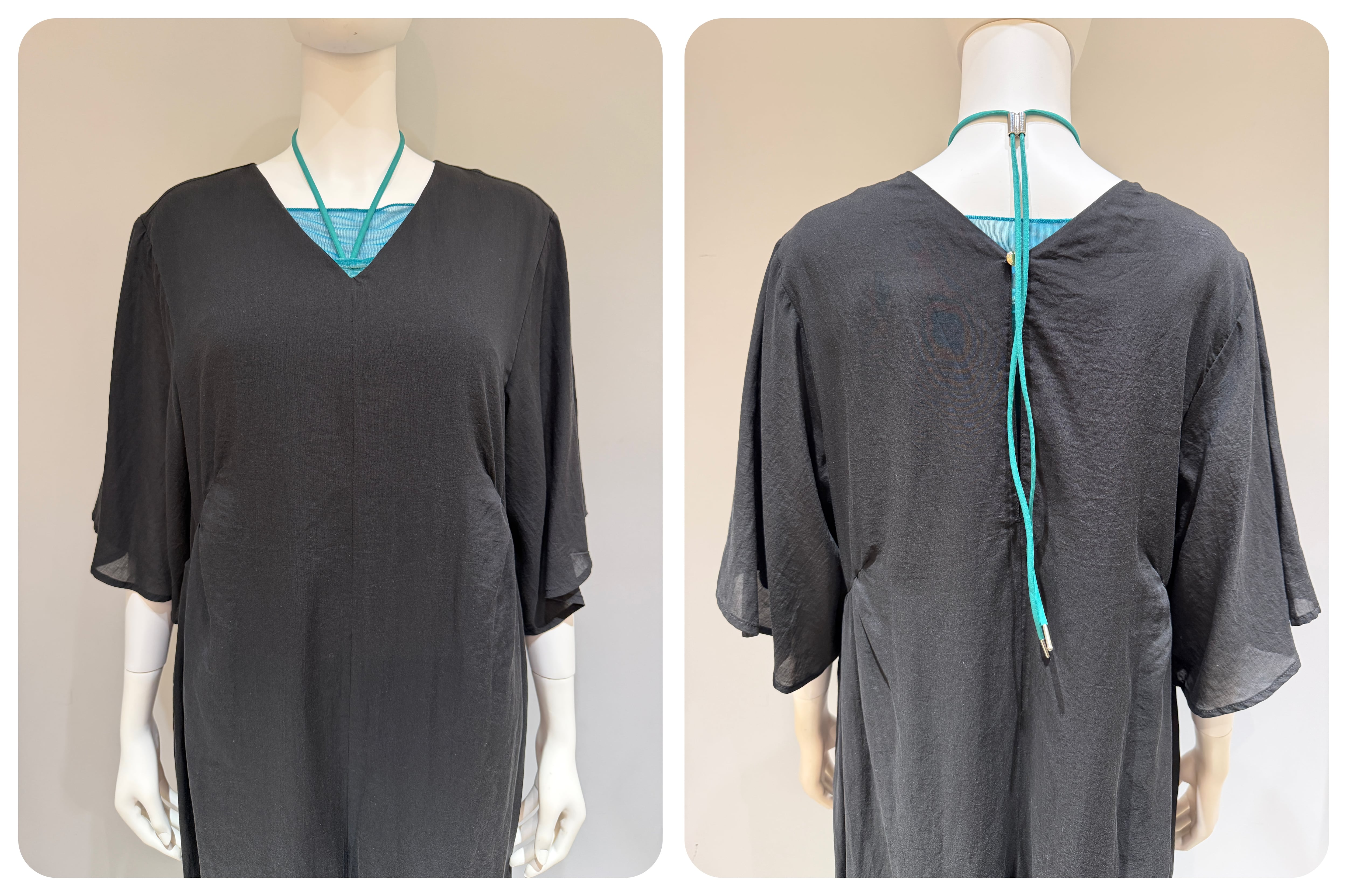 肌ざわりの良さと、さらっと1枚で完結できることなどを考慮しつつ、内側に綿100%のローンを合わせた2枚仕立て設計。