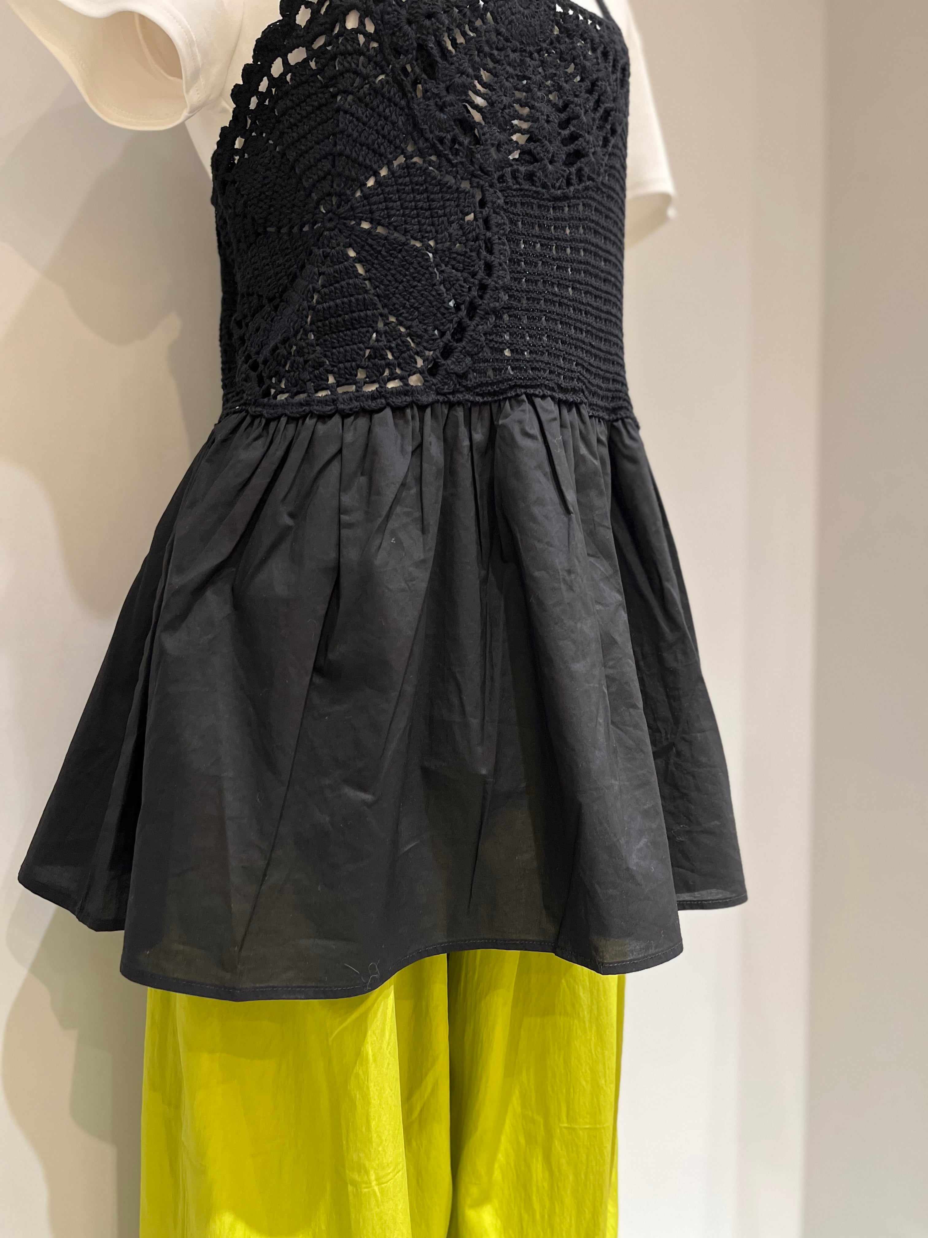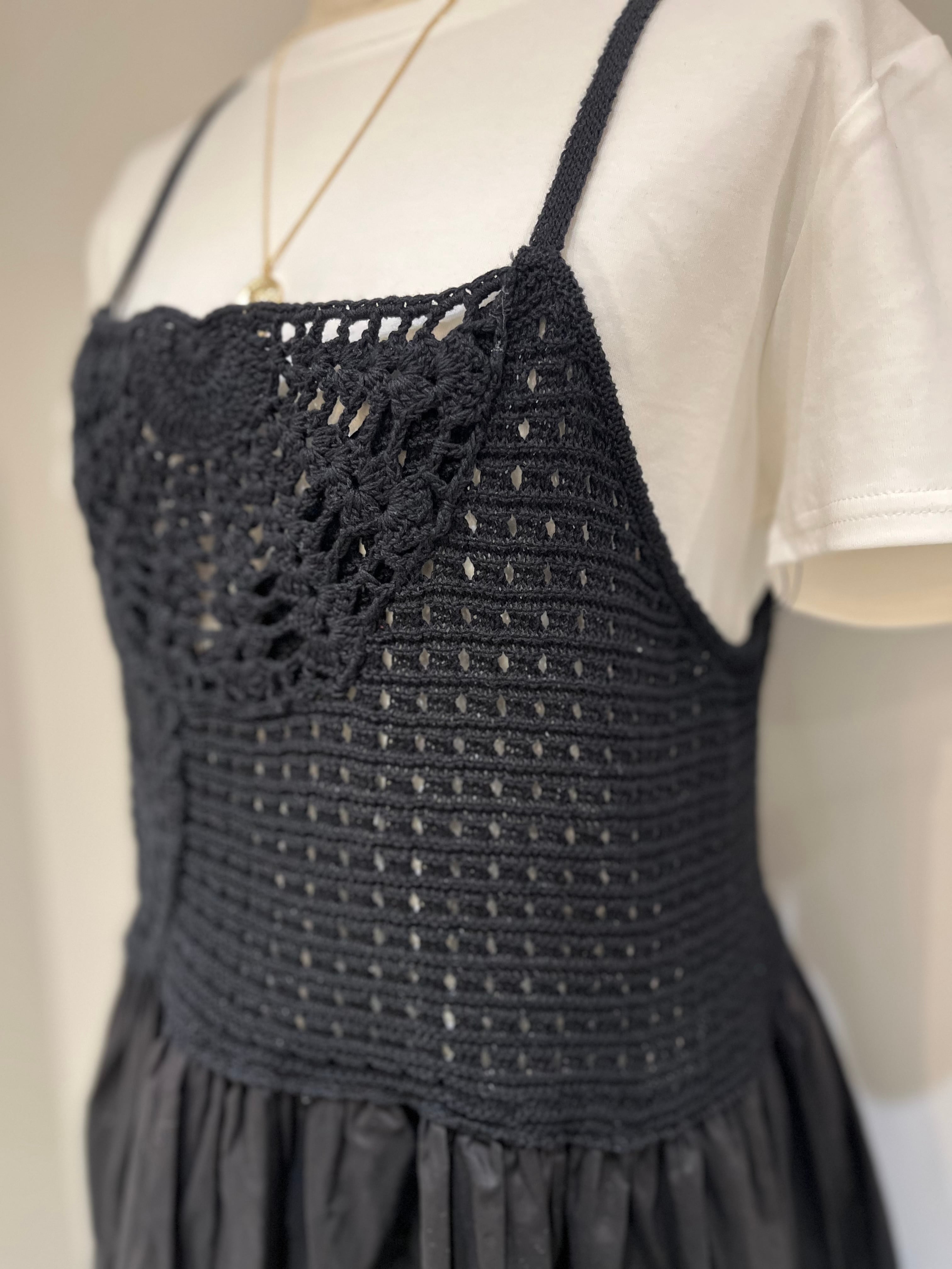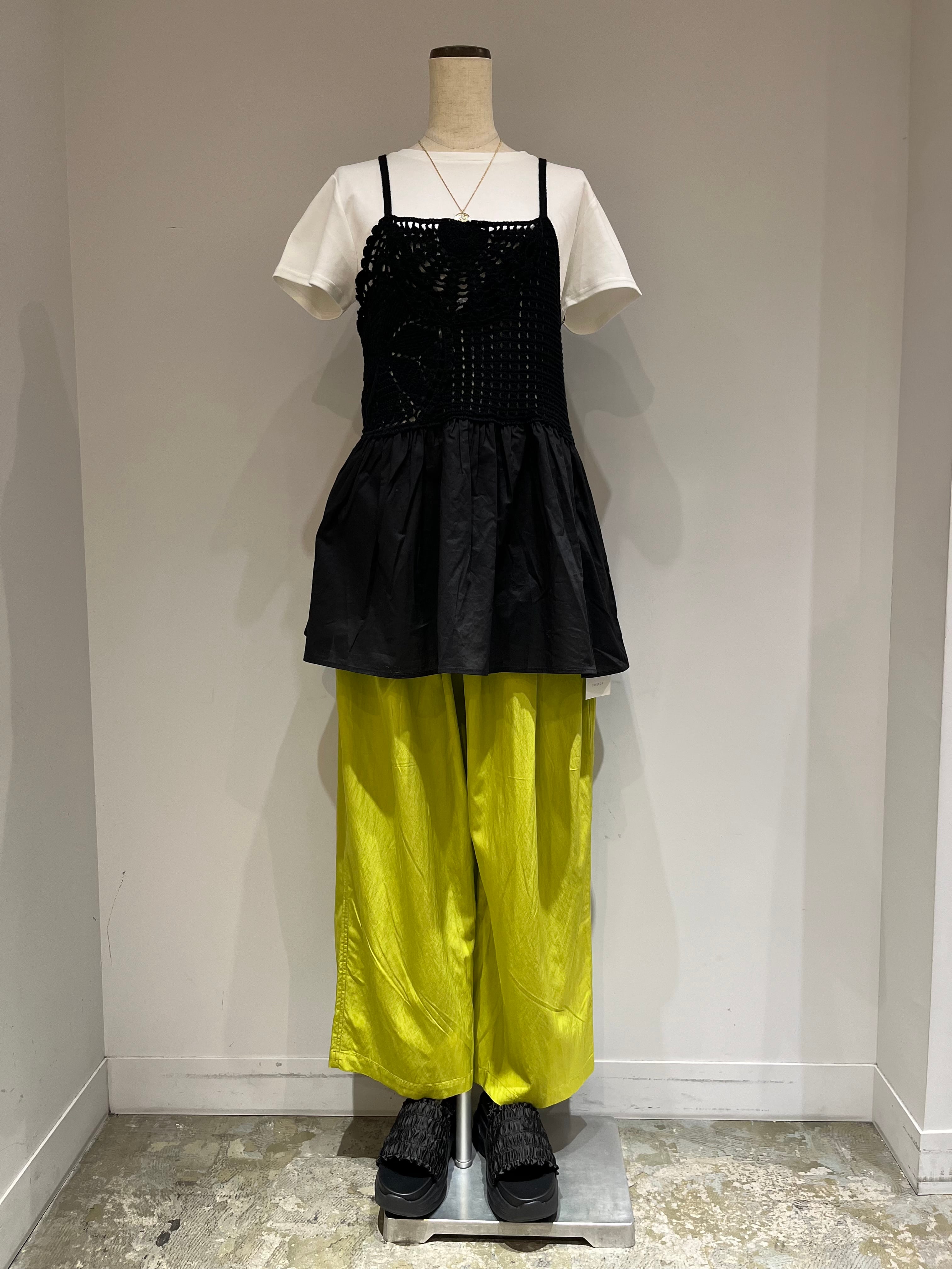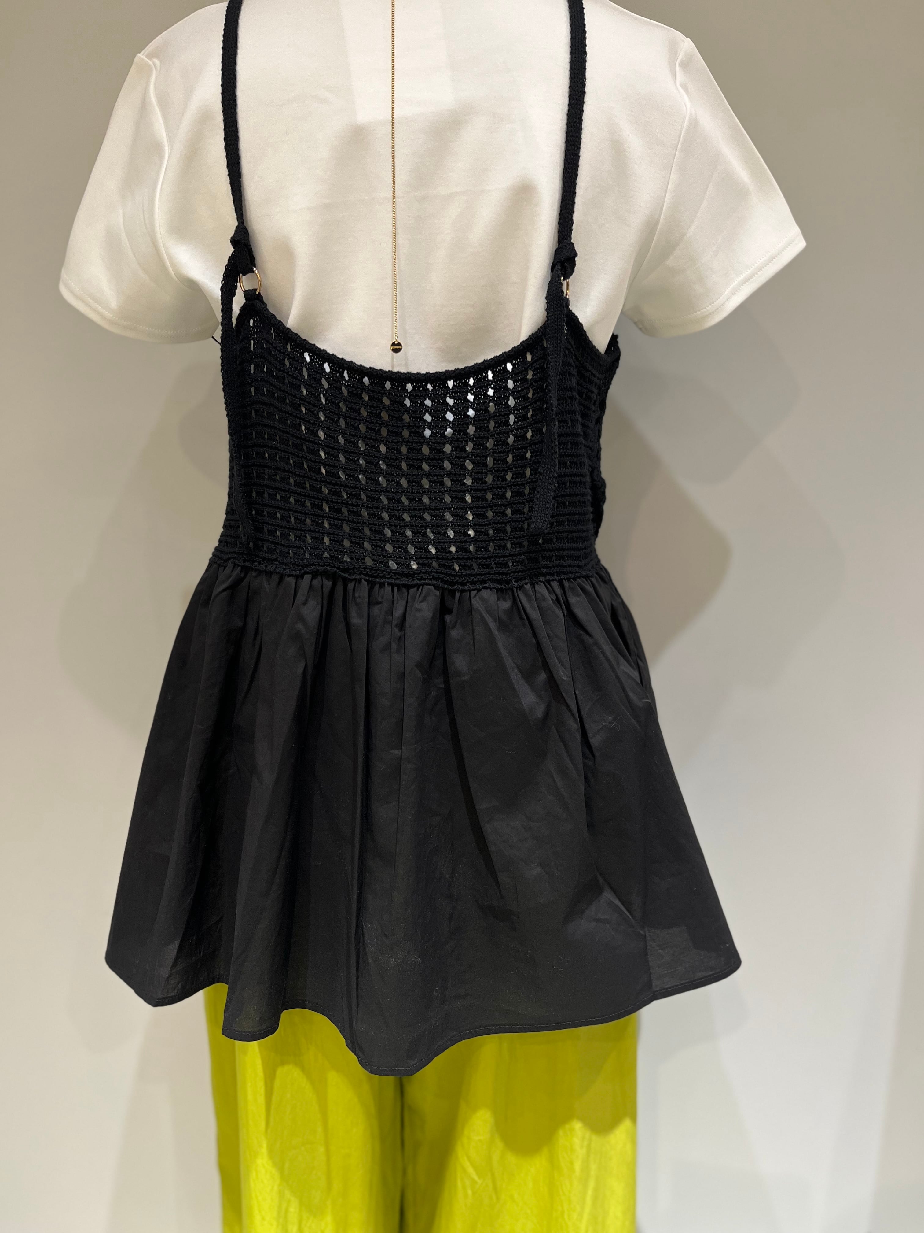 下身頃は布帛素材に切り替えたフレアデザインで、