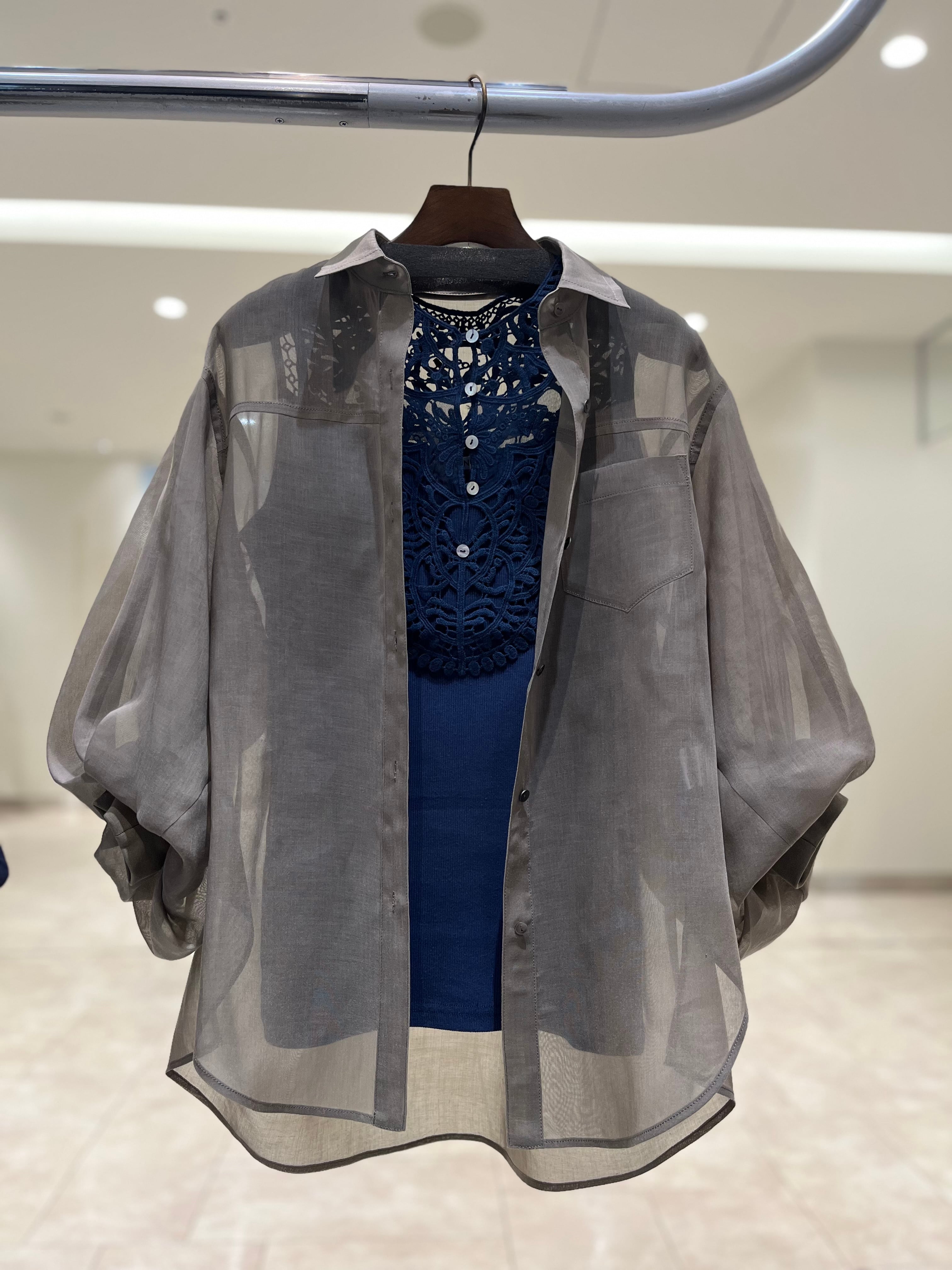 【PASSIONE】リネンライクシアーボリューム袖シャツ