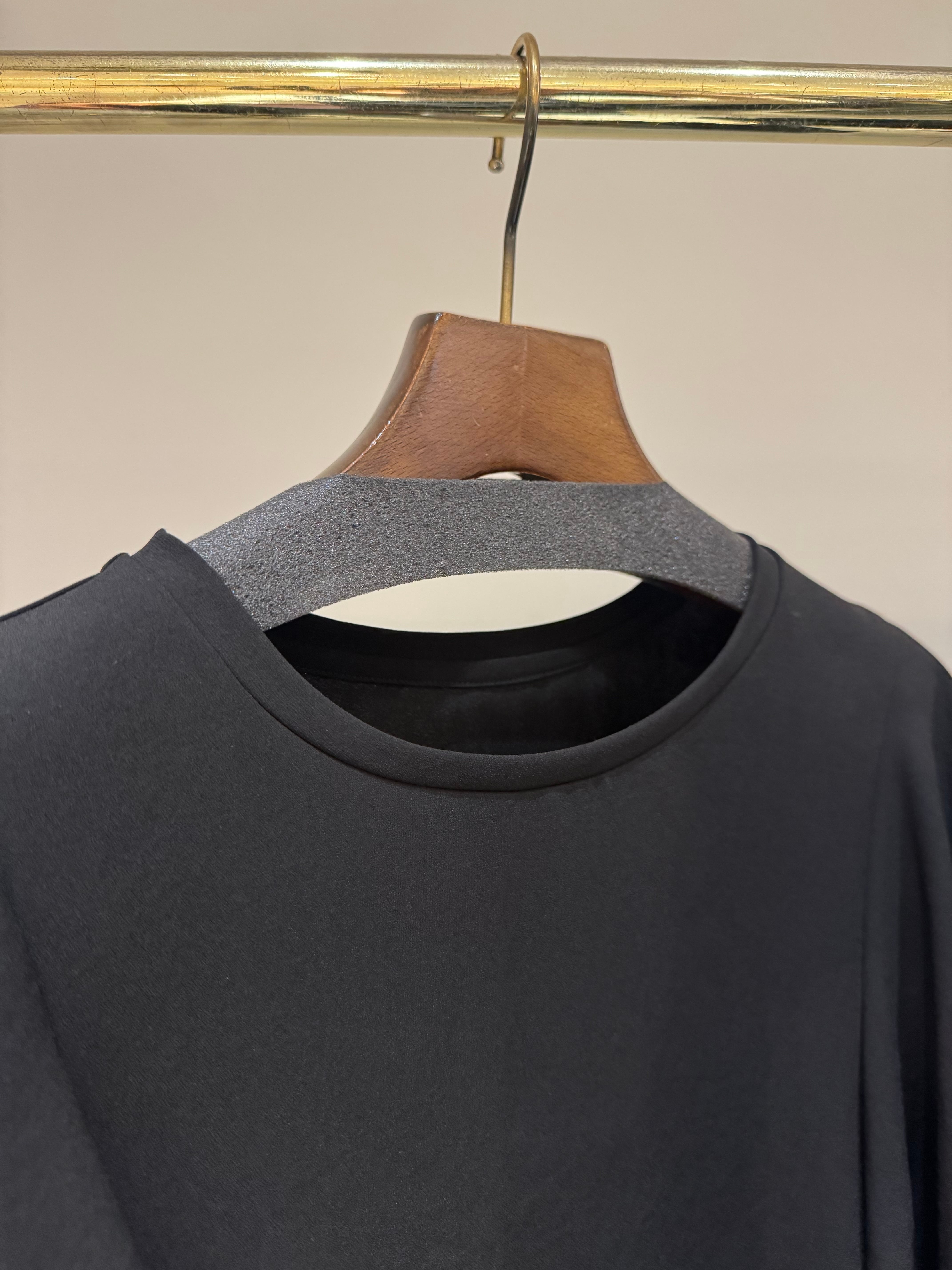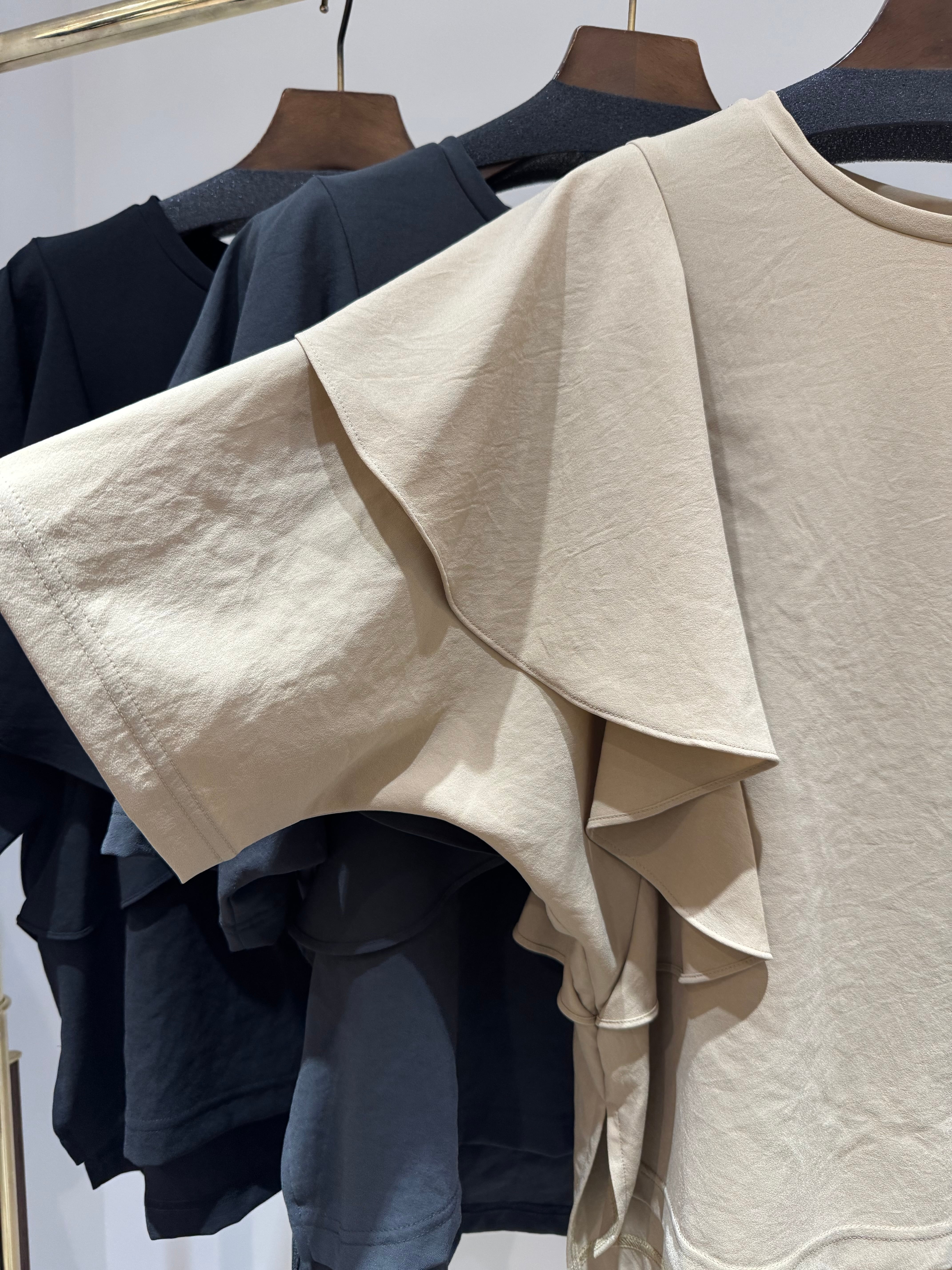 気になる二の腕部分を隠して脇周りも肌離れするドルマンシルエット。